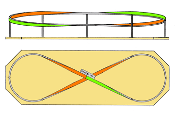 A vázlatterven látható szemléltető eszközt a Csodák Palotája számára készítettem, ott sokáig használták is. A 200x60 cm méretű asztalon két réteg – hátával egymásnak fordított – alumínium függönykarnis profilból alakítottam ki egy nyolcas alakúra hajlított Möbius-szalagot. A függönytartó sinekben egy apró játékautót lehetett végigtolni, amelynek a kerekeit függönycsúszkák helyettesítették. A látogató így tapasztalati úton győződhetett meg a Möbius-szalagnak arról a furcsaságáról, hogy csak látszólag van két oldala, mert ez a két oldal valójában egyetlen felület.