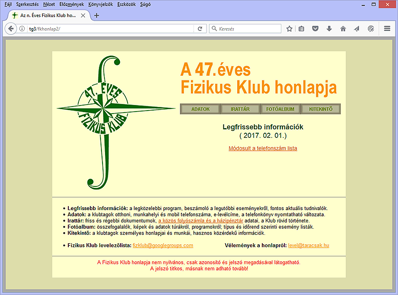 A Fizikus Klub honlap nem nyilvános, csak a Klub tagjai látogathatják