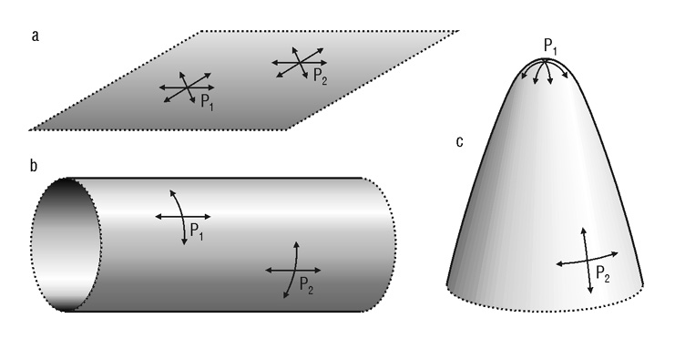 Ábra a lehetséges térszerkezetek szemléltetéséhez. 2002. évi kötet, Mészáros Attila: Napjaink kozmológiája.