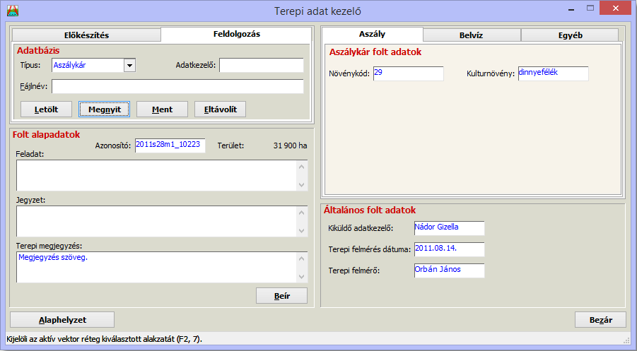 adatbázissal, melyet a munkatársak a munkák során folyamatosan töltenek fel az elvégzendő és az elvégzett feladatok térinformatikai adataival.