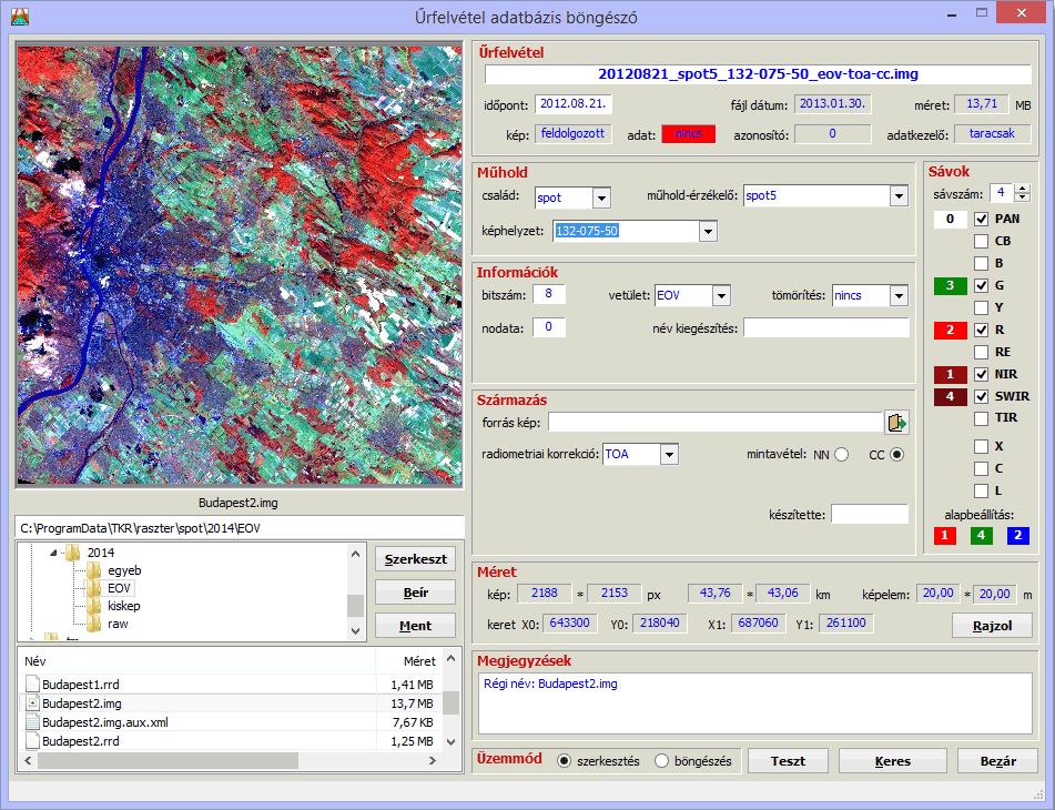 célja egy olyan háttéradatbázis létrehozása és kezelése, ami a FÖMI informatikai rendszerében található összes űrfelvételt tartalmazza.