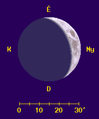 A Hold fázisa, látszó átmérője és a megvilágított rész állása az égi irányokhoz képest 2010.06.16-án.