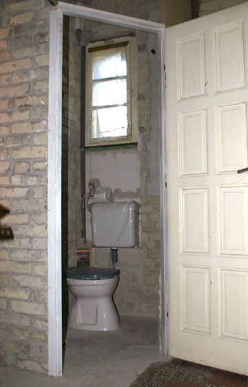 A falakat a csupasz tégláig visszabontottam, sőt néhány kisebb válaszfal helye is megváltozott. Eltávolítottam minden régi víz- csatorna- és villanyvezetéket, gombás ajtókeretet. Száz éve épült 12 lakásos társasház első emeletén lakom. Fölöttem hagyományos fafödém és padlás van, ezért a mennyezetet hőszigeteltem és gipszkartonnal borítottam. A vízszerelést korszerű, forrasztott vörösréz csöves technológiával végeztam. A falazáshoz, vakoláshoz és a burkoláshoz házi készítésű állványos keverőgéppel kevertem az anyagot. Ennek képe és leírása a