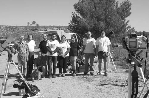 3. ábra. Tagjaink több expedíciót is szerveztek a 2005. október 3-i gyűrűs napfogyatkozás megfigyelésére. A csoportkép a spanyolországi megfigyelőhelyen készült