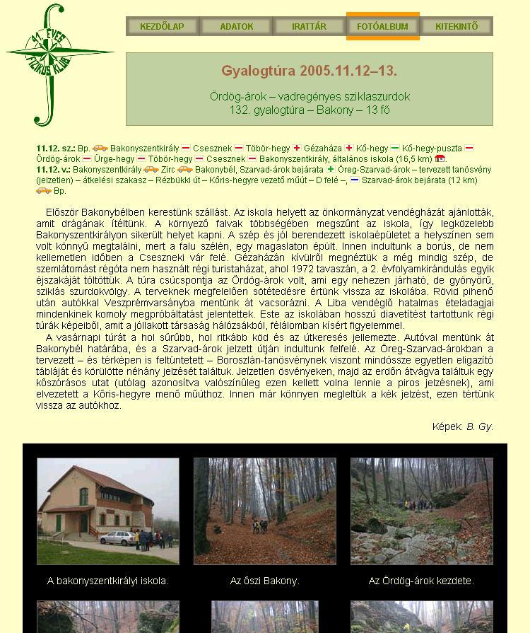 A túrák, összejövetelek és egyéb közös programok adatait egy OpenOffice táblázatban vezetem, ami 2010 elején csaknem 700 esemény információit tartalmazta. Az időpont és a helyszín mellett megtalálható benne az esemény szöveges leírása és túrák esetében a részletes túraútvonal is. A Fizikus Klub honlap program ennek a táblázatnak a tabulátorral tagolt szöveg változatából dolgozik. Segít az eseményhez tartozó fotók rendezésében, a képaláírások elkészítésében, a nyers szövegekeket HTML formátumra alakítja, és összeállítja a keresést segítő mutatókat. A HTML állományokat a honlap helyi könyvtárszerkezetének megfelelő könyvtárában hozza létre, ahonnan csak fel kell tölteni a szerver azonos könyvtárába.
