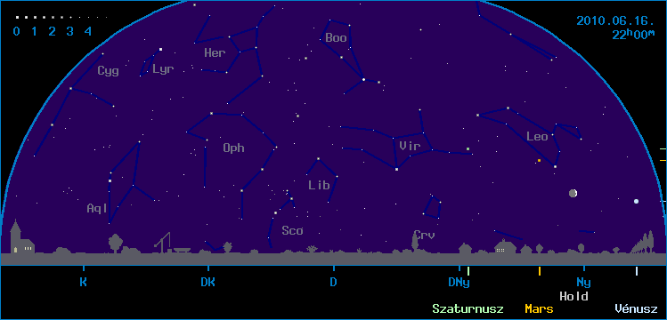 Az esti égbolt képe 2010.06.16-án nyári időszámítás szerint 22 órakor.