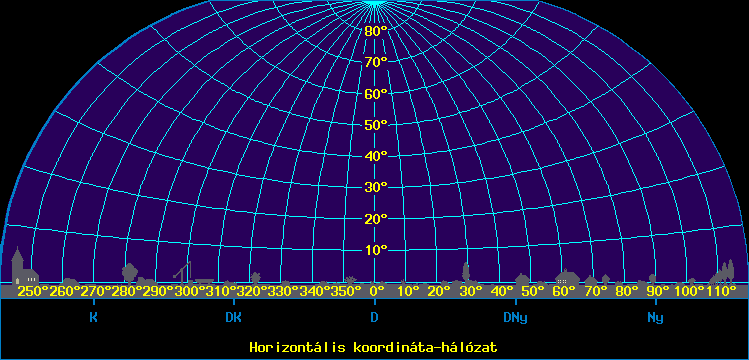 A horizontális koordinátarendszer fokhálózata az égbolt képeken. Mivel egy látszólagos gömbfelületet kell síkban ábrázolni, a torzulások elkerülhetetlenek.
